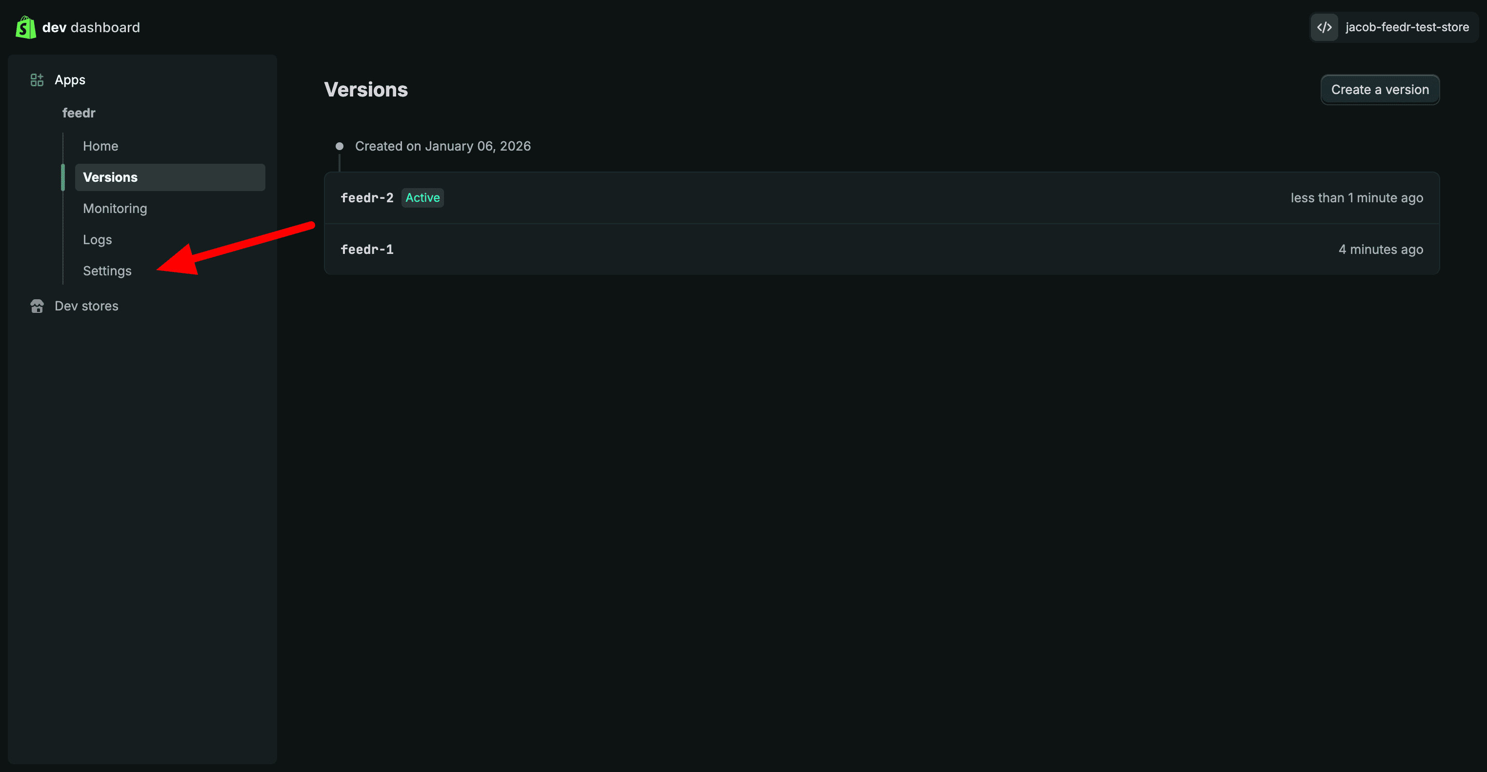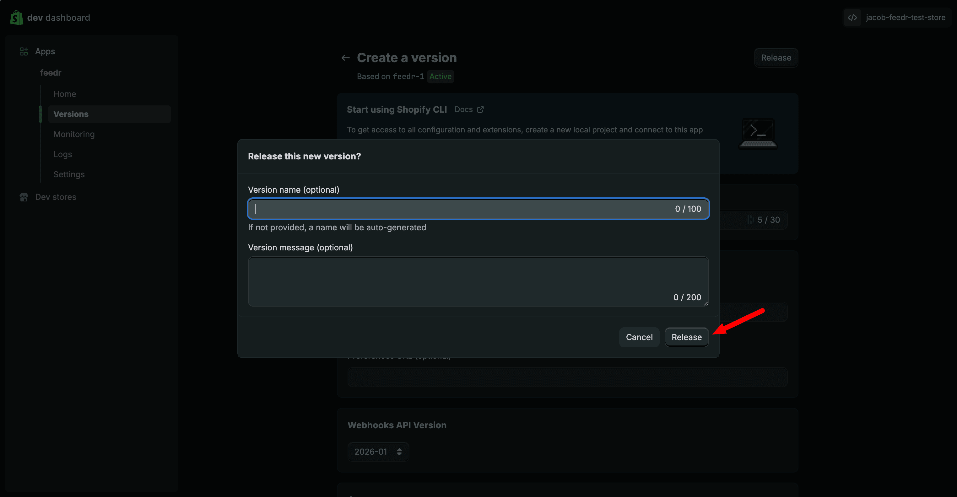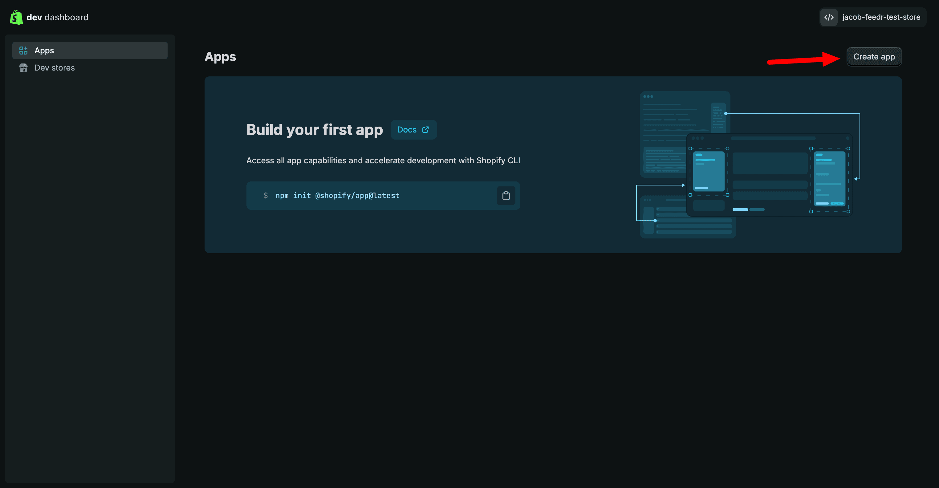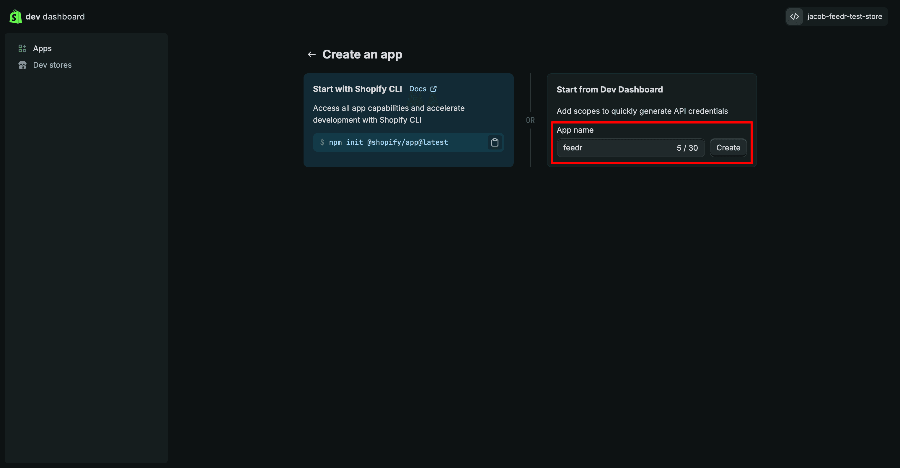 In the Dev Dashboard, click on the "Create app"-button.
