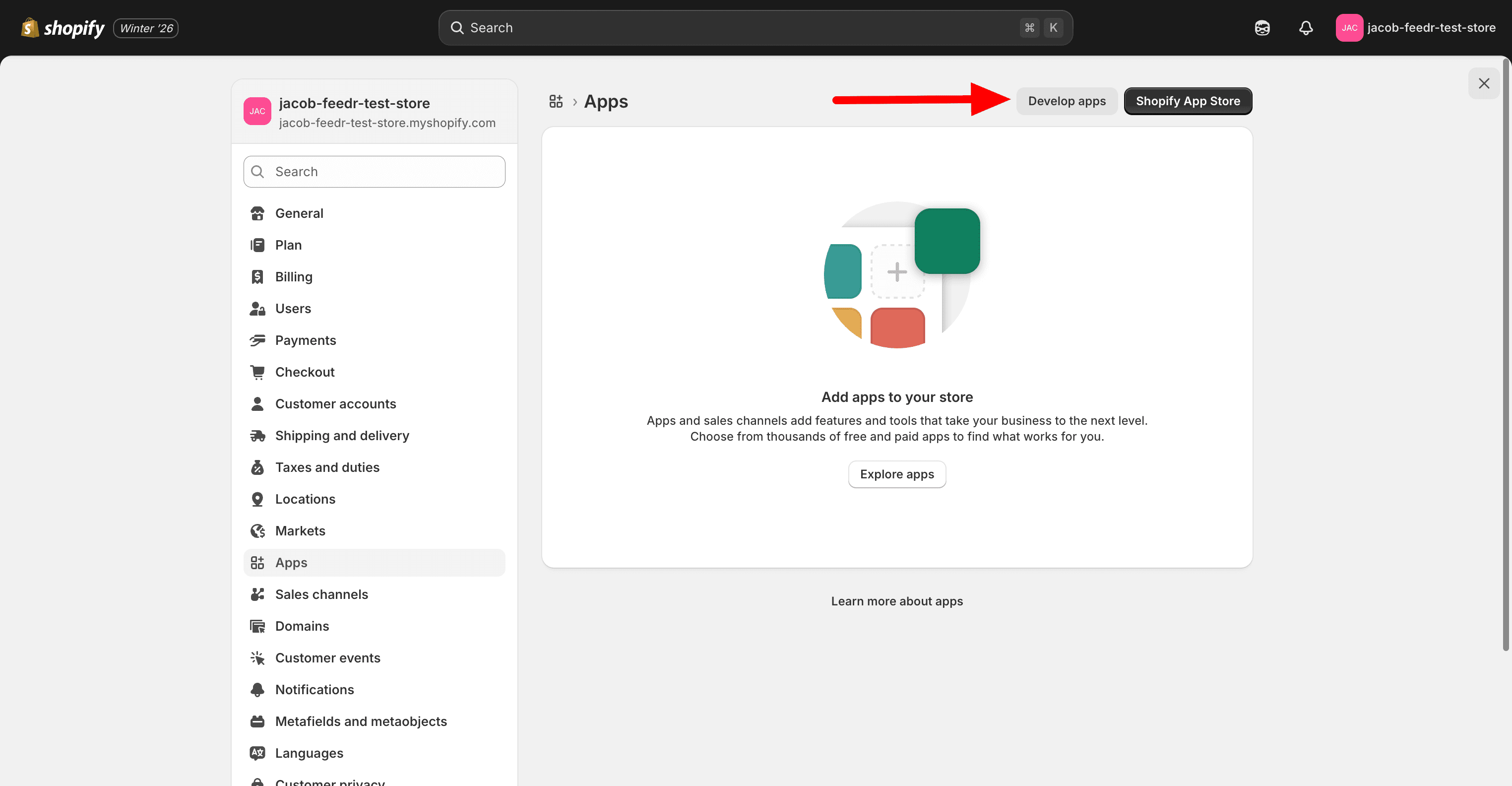 On the Apps page, click on the "Develop apps"-button.