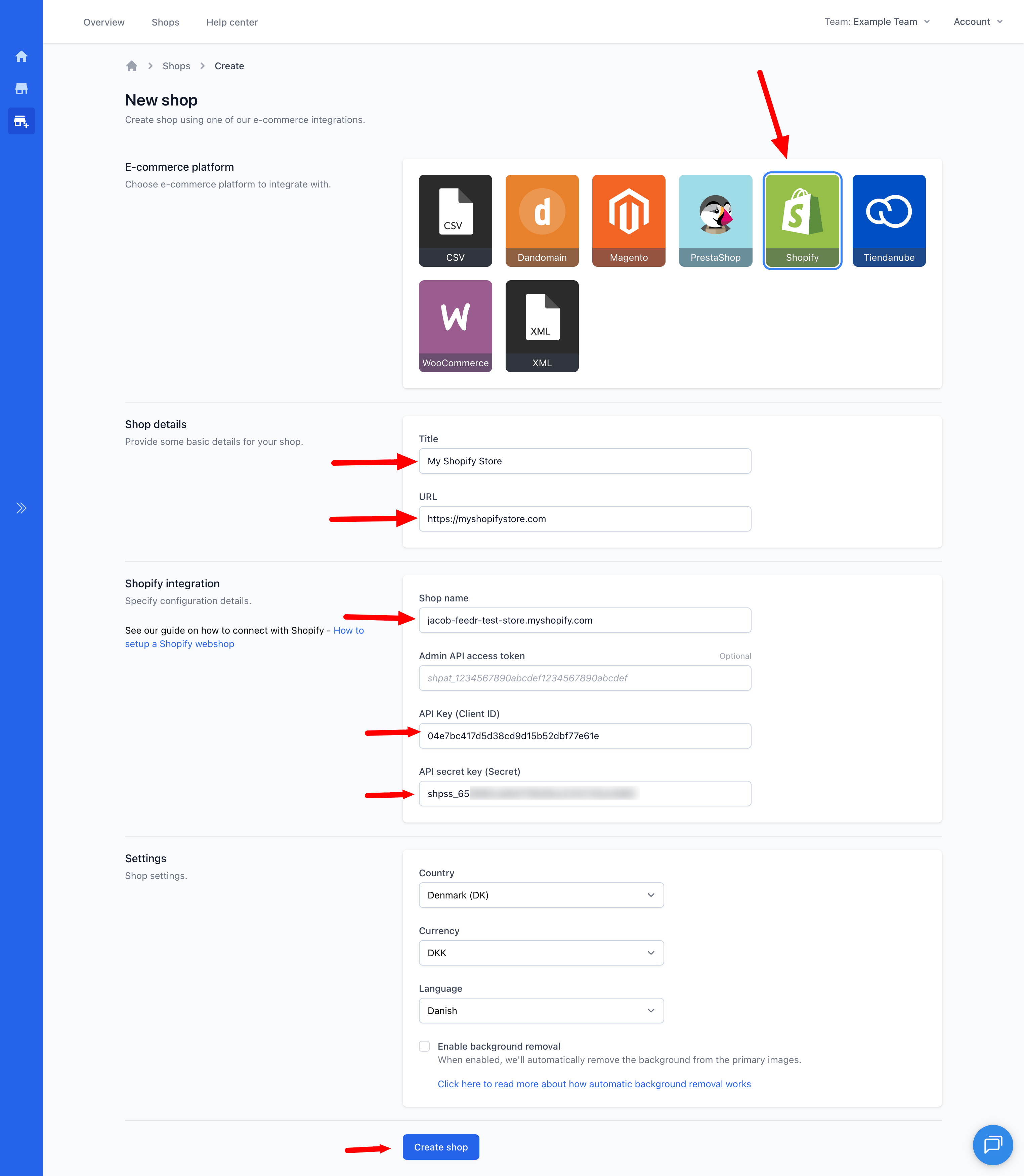 3. Create shop in Feedr