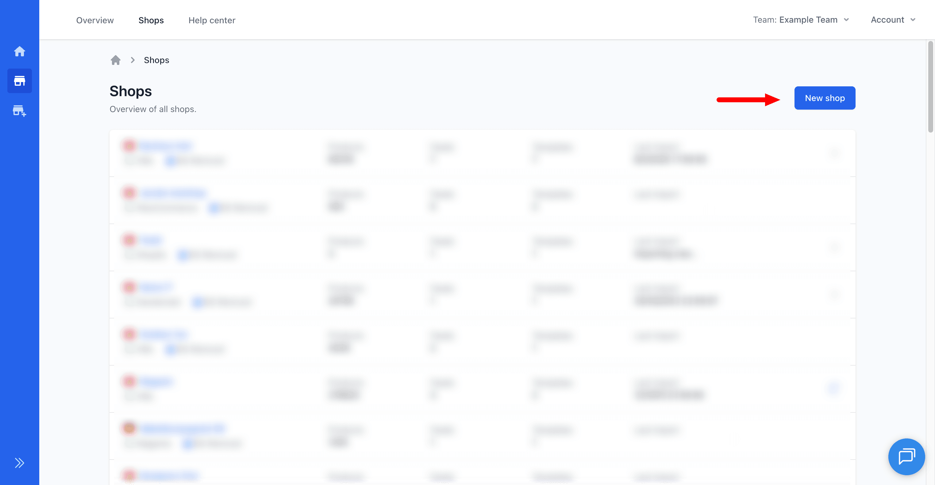 Now you need to create a shop in Feedr. Go to the shops page and press the "New shop"-button.