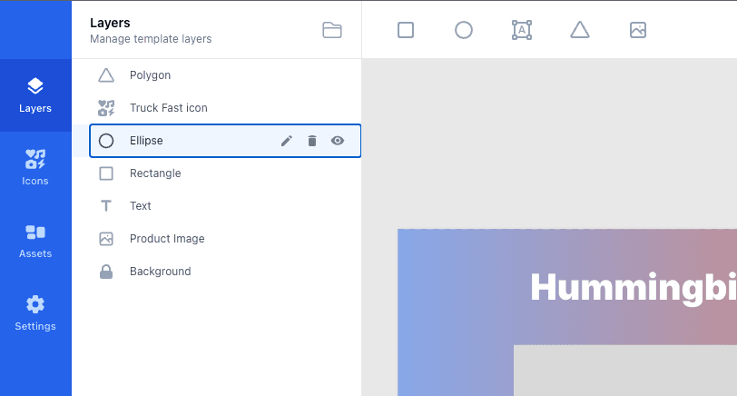 The layer panel is where you can add, remove, and edit layers. Layers are the building blocks of your template.